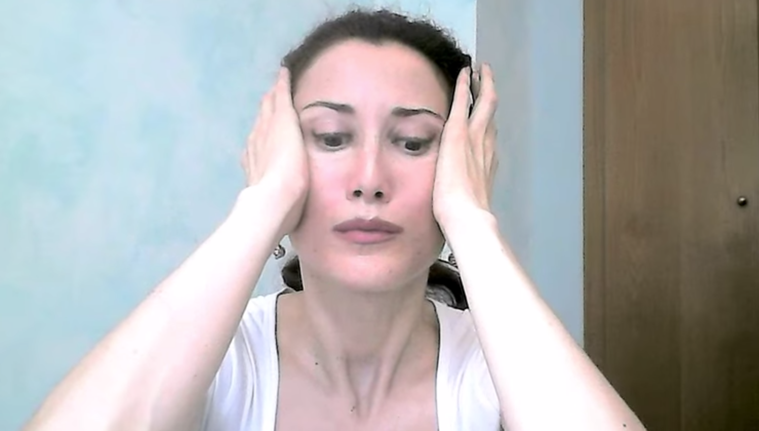 - Colocamos la palma de las manos en las mejillas y estiramos en dirección a las orejas. Notaremos que la nariz se ancha, y por eso, con el músculo de la nariz intentaremos estrecharla lo más posible durante 5 segundos.