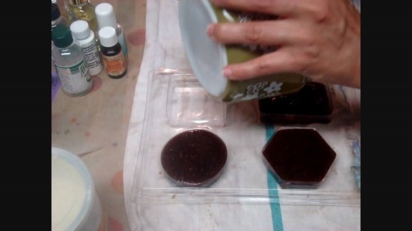 - Enmolda los jabones (es perfecto un molde que lo haga parecer como una barra de chocolate) y deja enfriar hasta que estén sólidos y listos para ser empleados.
